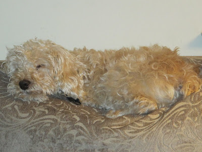 We fenced in a small area for them to run around in , but Moe is scared of the stairs. He has gone up and down a couple of times but mostly sits on the porch watching the others run around and play. It's so sad, we need to work on that! We have a little time to help him while we wait for the tile and cabinets to arrive!